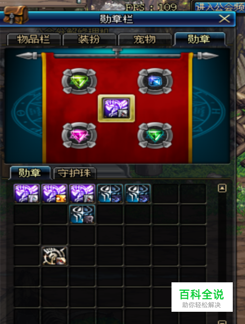 我们看到装备信息栏,可以看到最后面这里有一栏勋章栏,既然在这里,那么肯定可以增加属性,所以我们该去哪里获得勋章以及守护珠呢