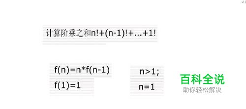 把问题换成公式。 如把阶乘之和定义为f(n)=n*f(n-1)。也就是说n*f(n-1)=n*(n-1)*f(n-2)=...=n*(n-1)*(n-2)*...*1