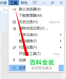 方案二:清除浏览器缓存。 点击“工具”菜单,从中选择“选项”项进入浏览器设置界面,如图所示:
