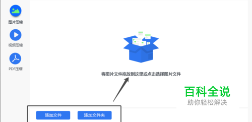 然后就可以添加需要进行压缩的JPG图片,点击页面中添加文件或者添加文件夹的按钮,就可以将图片添加进操作界面,也可以直接把JPG图片拖拽进页面中。
