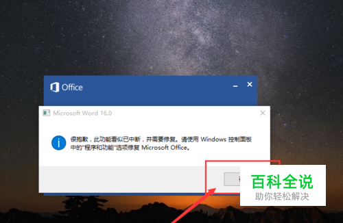 如果在检查并安装了更新之后,Office软件在打开时还会弹出错误信息对话框,那么此时我们需要来修复一下Office套装软件了,请看我下面具体的操作步骤。