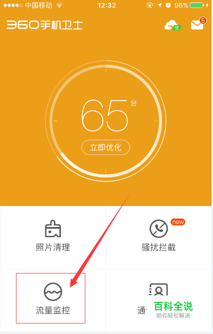 进入到360手机卫士APP的首页,在下方我们就能看到有一个流量设置,点击打开。