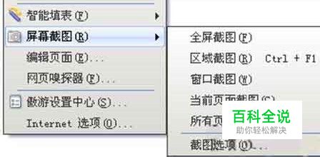 三、傲游浏览器所带的工具截图 选择“菜单栏工具” 选择“屏幕截取”