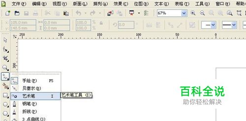 打开CorelDRAW软件,新建一个空白的文件,鼠标左键单击工具箱左边的【艺术笔工具】,选择艺术笔,根据绘图的大小,设置好艺术笔线条的宽度,这里设置为2,如下图所示。