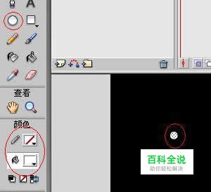 打开flash文档,设置背景色为黑色,选择椭圆工具,把笔触颜色改为无,填充色改为白色,在图层上面按住shift键画一个圆。