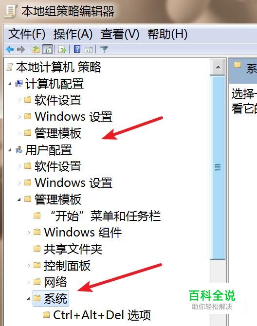 打开后,先找到左边的‘用户配置’下的‘系统’,并点击打开。