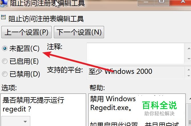 然后在弹出的窗口上点击选中‘未配置’就行了。