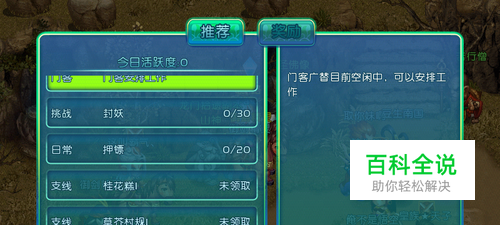 ◇龙门探隐 任务等级:30(需要绳索,可在龙门石窟副本获得。推荐组队) 任务次数:普通四次、魔钻六次。 任务奖励:30级装备升级材料、大量经验 任务详情:在龙门山(9,22)处点击蓝色晶石爬上,然后点击晶石龙门探隐即可进入。进入后点击山神进行对话,然后收集齐镇鬼镜碎片并打败龙门七鬼、小鬼喽罗。即可前往(54,39)处与山神对话合成镇鬼镜(需要打败除森罗外所有怪才会出现),然后可以去打鬼王森罗,打败一次后第二次打奄奄一息的鬼王,对局中人物选择使用物品,选择镇鬼镜即可,宠物使用无效。打完即可传送出副本。 一定次数后获得称号:龙门镇鬼者