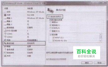 单击“工具”—“设置”菜单项,打开设置对话框,在左侧窗格中选中“集成功能”选项,在右侧窗格中选中“启动时启用”复选框。然后在“共享设备和资源”栏中选中所需的设备,还可以在“驱动器”项下选中所需共享的Windows 7驱动器,如图2所示。