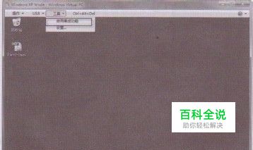 在Windows XP虚拟机中要实现这个功能,需要确保在工具菜单上选中“启用集成功能”菜单项,如图所示。