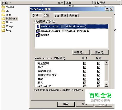 如何对把SafeBase这个文件夹的权限设置为完全拒绝了呢? 一:打开;C:Documents and SettingsAdministratorApplication DataTencentQQ 二:在菜单上点“工具”-“文件夹选项”,弹出窗口中选“查看”。如图,取消对“使用简单文件共享(推荐)”的选择,点“确定”关闭窗口。 接着,在要设置权限的“SafeBase”文件夹上点右键,选“属性”-“安全”,这时就可以看到设置权限的窗口了。在“组或用户名称”中选择“administrator”这组,并在下面“administrator”中设置权限,勾选“完全拒绝”,然后再操作一次,在“组或用户名称”中选择“system”这组,并在下面“system”中设置权限,勾选“完全拒绝”,把这样就可以把SafeBase这个文件夹的权限设置为完全拒绝。 同时声明下,在C盘FAT32情况下,文件夹在右键属性情况下是没有安全选项的,只有在NTFS格式下才会有。转换方法如下运行cmd 输入CONVERT C:/FS:NTFS即可 不过要重启。然后重启后你找到SafeBase文件夹,属性-安全,Administrator点全部拒绝就可以了!
