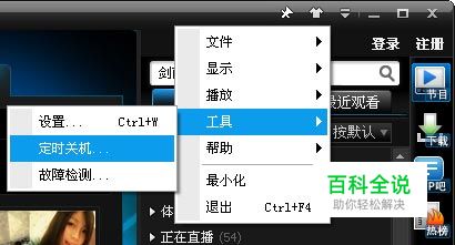 请您点击PPTV网络电视 主界面右上角的“菜单--工具--定时关机”即可