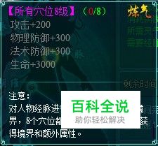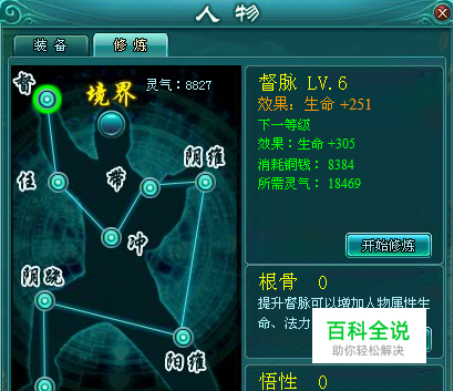 根骨值初始为0,最高为100,每次提升成功增加10,对应的属性会根据该经脉当前等级增加;