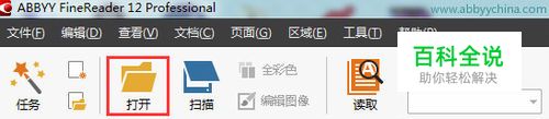 打开ABBYY FineReader 12软件,在主工具栏上点击打开按钮。