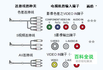 影像输出连接线的种类如下表 上图星星的数目代表画质。实际画质可能因连接的电视机或使用环境而异。