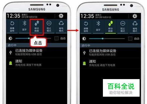 向左滑动屏幕上方任务栏,把“移动数据”点为绿色。