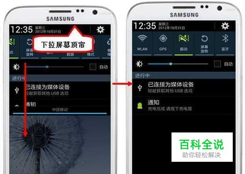 确认您的手机数据是否开启,用手滑下屏幕顶帘。