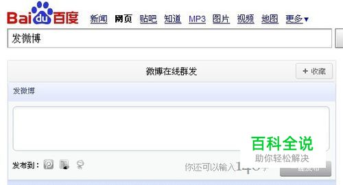 在百度搜索框中输入“发微博”等关键词,点击“百度一下”,出现如下图: