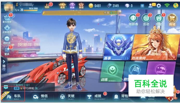 我们登录游戏来到游戏大厅,在游戏大厅的左下角点击车队按钮,如图所示。