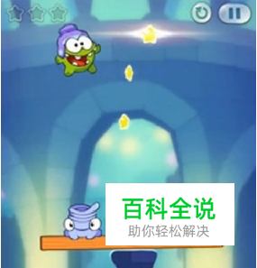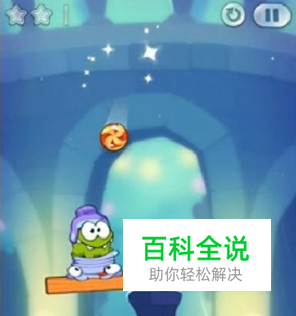 1.继续割绳子2第四章三星图文攻略,这一关我们需要注意的是,短时间内只能弹起Om Nom一次,要不因为Om Nom太重,杠杆就会倾斜,那么Om Nom就会掉下去了!