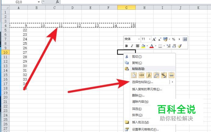 同样的步骤重复一边即可,如图选择竖列,选择性粘贴中勾选转置即可;