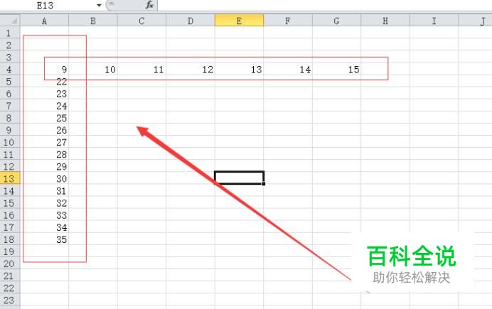打开Excel表格,分别输入横列和竖列的数据;