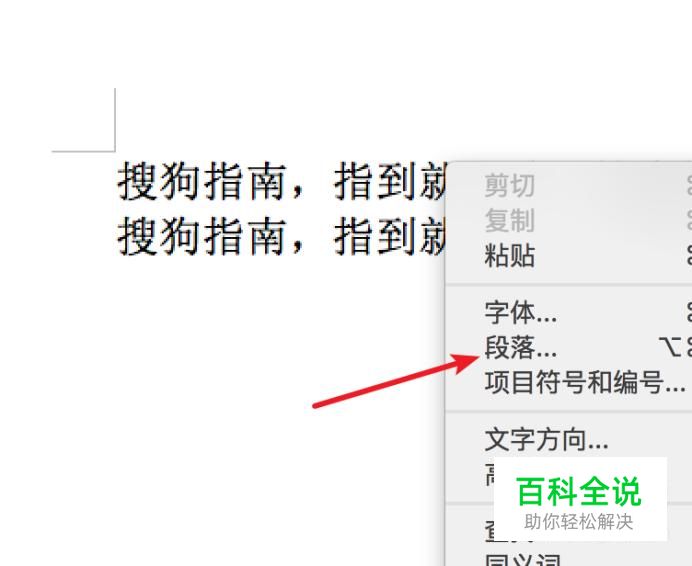 右键点击文档,在右键菜单上点击‘段落’