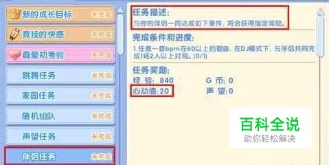 QQ炫舞2心动值怎么加?怎么才能在游戏中快速提升角色心动值呢?下面就来介绍游戏中心动值的获得途径方法: (1)完成伴侣任务 伴侣任务需玩家成为伴侣之后方可开启,任务如下图所示: 伴侣任务的完成条件有与伴侣共同对局和做伴侣交互动作两种。 完成伴侣任务可以增加玩家的经验值和20点心动值 (2)对局使用心动值道具 目前有两种道具供大家使用,一个是心动一刻,一个是心动永恒,两种道具样式如图所示: 两种道具均为珍品道具,只能使用金币购买,其中两种道具的使用要求不同: 【心动一刻】每16小节可以使用一次,使用后增加20点心动值。使用心动值道具每天最多获得5000心动值 【心动永恒】每16小节可以使用一次,使用后增加50点心动值。使用心动值道具每天最多获得5000 (3)使用伴侣动作 当伴侣同时在房间里面时,可以右击另一名伴侣,出现选项菜单,接着用如下图所示的办法, 通过做伴侣动作增加心动值: 在默认情况下只有5种动作可以进行操作,其他的动作将在情侣等级达到5、10、15、20这样的等级才可以解锁。 每做一次动作,增加1点心动值,每天限做5次。 获得5000 (4)两人一起完成对局 伴侣二人一起完成一场任意模式对局,都会有心动值的加成,伴侣每完成一场对局,增加2点心动值。