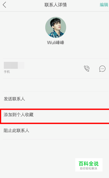 点击进入查看联系人详情,可以看到“添加到个人收藏”。