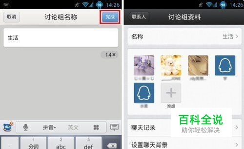 在“讨论组名称”修改界面修改名字,然后点击右上角的“完成”即可。