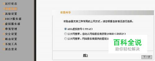登陆成功后,点击快速设置→ADSL虚拟拨号→下一步→输入上网帐号,上网口令(就是宽带服务商给你的拨号帐号和密码)
