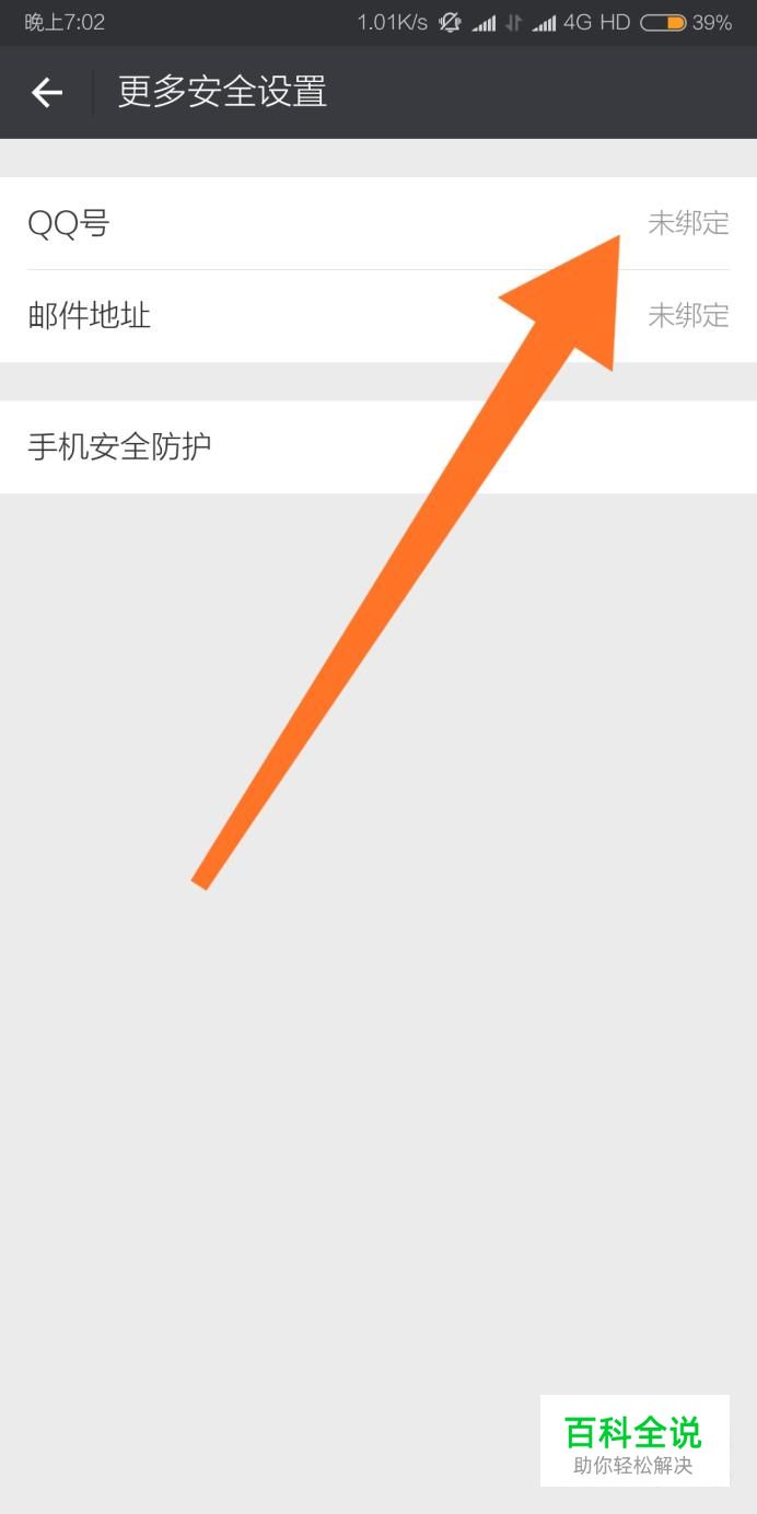 进入“更多安全设置”页面后,会发现我们的微信账号还没有绑定QQ账号,所以还不能通过QQ账号登录微信。接下来点击“未绑定”字样的位置。