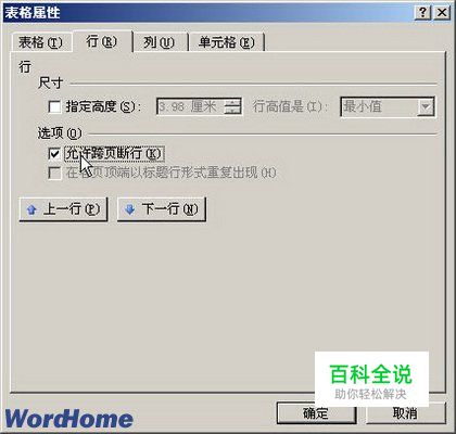 第2步,在打开的“表格属性”对话框中,切换到“行”选项卡。选中“允许跨页断行”复选框,并单击“确定”按钮,如图2009020609所示。图2009020609 选中“允许跨页断行”复选框 设置“允许跨页断行”和未设置“允许跨页断行”的效果如图2009020610和2009020611所示。图2009020610 设置“允许跨页断行”的效果图2009020611 未设置设置“允许跨页断行”的效果