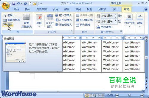第1步,打开Word2007文档窗口,单击表格中需要设置“允许跨页断行”功能的特定行。在“表格工具”功能区中切换到“布局”选项卡,并单击“表”分组中的“属性”按钮,如图2009020608所示。图2009020608 单击“属性”按钮