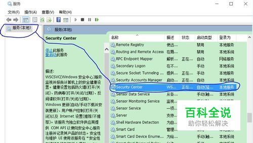 在本地服务列表中找到SecurityCenter服务;