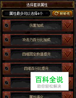 套装属性就是由自己选择的~伤害加成可以黄白爆,必须要3件以上的套装才可以选这个属性 而1~30级技能+1必须要6件套才可以选。