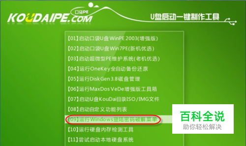 很多使用电脑里有重要资料的朋友喜欢给电脑加个windows系统登陆密码,来保证电脑里的资料安全。但是很多朋友记性不是很好或者因为其他不可知的原因忘记或记不清登陆密码。那么如何解决这个问题呢?其实口袋PE迷你制作工具是自带破解windows登陆密码功能的,我们可以使用口袋迷你PE制作工具来破解或绕过开机登陆密码的。1.下载口袋迷你U盘制作工具,安装完成后进入PE选择界面。选择第九项运行“windows登陆密码破解菜单”