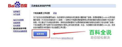 2、点开“使用百度前必读” 选择“隐私权保护声明”,往下拉,就可以看见蓝色小字“个性化工具”,点击它;