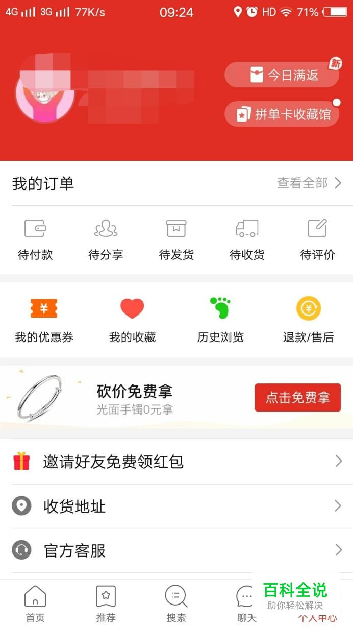 在手机中打开你的拼多多app。可以看到下方有“个人中心”这一项。