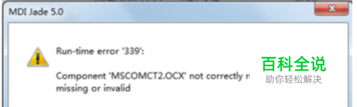 解压jade6.5安装文件后,运行jade出现错误提示:Run-time error '339' 缺失的文件可能有 ‘MSCOMCTL.OCX' 或’MSCOMCT2.OCX'或‘grid32.ocx’或‘COMDLG32.OCX'或’THREED32.OCx‘文件