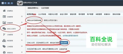 在PC端登录微铺宝微店账号,在左栏项目菜单里找到“微信公众账号”点击进入微信公众号授权店铺,已有公众号的商家点击“现在授权”,未开通公众号的商家“去微信开通”。