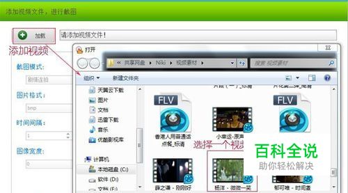 打开视频截图后,先添加视频文件进去,点击加载按钮。打开选择一个要截图的视频文件,再点击打开。视频需要下载好的才能够截图。