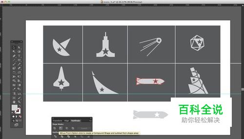 2、清理 仔细检查每一个图标,以确保它没有缺陷——细节在小尺寸上是完全的,当你放大的时候小的缺陷就能被发现。在所示图标,我需要删除参差不齐的路径。 在Illustrator中,使用Pathfinder工具统一层叠元素,减去前面元素,比如这些图标中的星星图标。 关键的原则是确保你的图标是可读的小尺寸。心可能的简化。