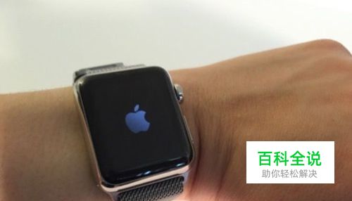 Apple Watch 到手后,你要做的第一件事就是给它充电。充好电后,你就可以开机了:按住侧边键两到三秒,屏幕上就会出现一个苹果 logo(如下图)