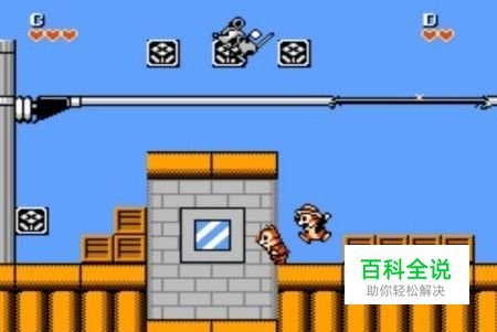 第一关: 主要场景是街道。可以吃到的物品有钻石,松果,急救箱,拳,星星,盾。遇到的敌人有扔橄榄球的老鼠,会发射子弹的蜜蜂,躲在箱子里的老鼠(一定要小心,它会突然站起来,顶着箱子走来走去~)。躲在箱子中,能够避开一次敌人的袭击,包括子弹和碰撞。街道上的急救箱遍地都是,这也是与FC松鼠大作战不同的地方。 走到街道的尽头时,需要向上走,跳到屋顶上后,立即连跳,才能跳到电线杆上,跳不上去会掉下来摔死。上了电线杆,注意电线上来回流动的电花,基本连跳就可以通过,到了电线杆尽头,跳到右侧的电梯上,再跳到右侧的石台上,向右走一段,原地跳一下,这时就可以看另一个电梯,跳到它上面,等它升到最高处,跳到右边的石台上,向右走到头,跳一下,boss出现,boss是蹦蹦兔,打boss可使用天上的传送带扔下的木箱,搬起木箱,扔向boss。 这个boss设计的难度不大,首先它不向上跳,不发子弹,左右走时,只能到达右边的尽头,到不了左边的尽头。