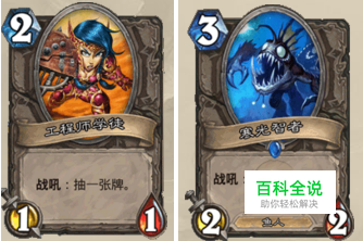 工程师学徒&爆牌鱼: 不得不承认的是这是一套自闭卡组,一切都是为了完成任务和集龙珠,要最快速度完成这个过程,必须要有强大、及时的过牌,除了职业卡奥术智慧之外,及时、强力的过牌就数这两张了,都是战吼,比亡语快、节奏更好,苦痛虽然对于法师也能过2张最少,但是同样需要“火冲”,拖节奏,因此选择身材差的工程师学徒,和同样为对手过牌的爆牌鱼(偶尔还能爆对手一波,爆到关键卡就爽了),可以说是为了目的不择手段。