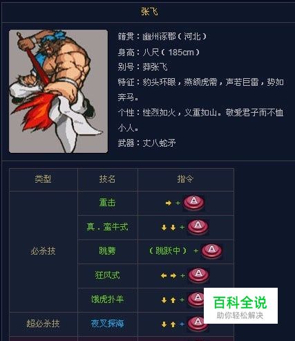 张飞 Hit 给分表 1~6 7 8 9 10 11 0 20000 180000 280000 300000 320000 角色连技表 入力方式 HIT数 总和分数 AAAA+←→A+↓↑A 6~7 0~20000 AAAA+←→A+→→A+←→A+↓↑A 8~10 200000~780000