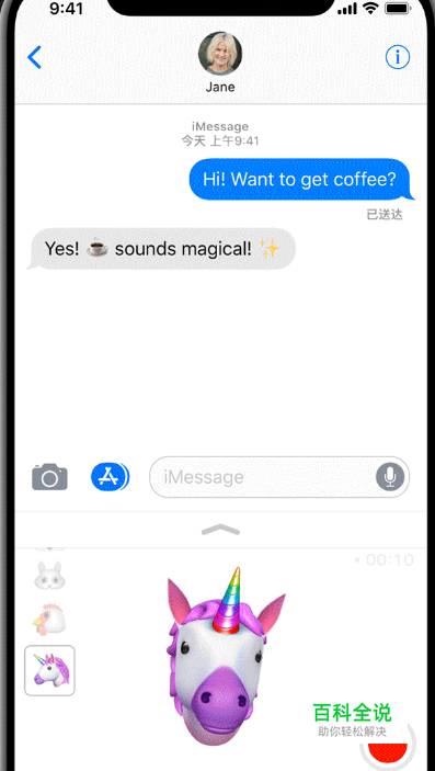 创建动话表情贴纸 使用您的专属自定动话表情贴纸装点您的信息。具体操作如下: 打开“信息”应用,然后开始编写新信息或轻点现有的信息。 轻点 ,然后轻点 。 选择一个动话表情,然后直视您的 iPhone X 并将您的面部置于取景框内。 做出一个面部表情,然后轻触并按住这个动话表情,并将它拖移到信息中以自动发送。
