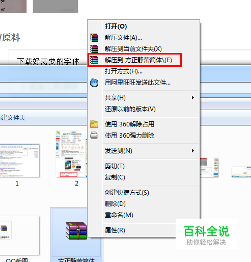 win7系统安装字体最方便了,解压好你下载好的字体压缩包(一般都是压缩好的),得到的TTF文件,如果没有以下这个大概形状,说明电脑没有压缩软件.