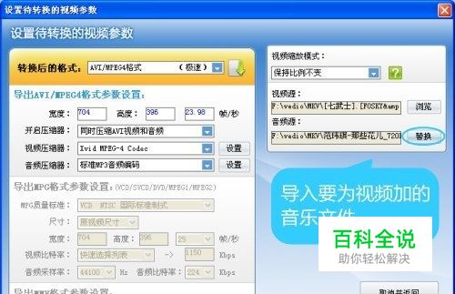 为视频替换效果更好的音乐 导入视频进入“设置待转换的视频参数”对话框后,在右上角“音频源”处,点击“替换”按钮,将要替换进入视频的音乐文件导入,给视频加音乐的过程就完成了,事实上,它不像我们想象中的需要将原视频的音视频分离,再加入新的音频这么麻烦,而是可以一步到位的实现给视频加上新的效果更好的音乐这一需求。在这一对话框,我们同样可以选择导出视频的格式,超级转换秀支持导出目前最流行的AVI、RMVB、WMV、DVD等格式,可以将制作好的视频方便的上传到网络或刻录成光盘,参数设置非常灵活。导出WMV时,还可以实现视频的消音,细节处可见其功能的强大和设计的人性化。